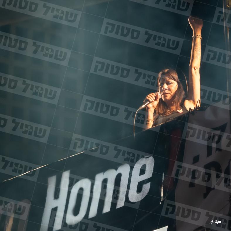 מלי דרוויש בסיום הקראת שמות החטופים על הגשר מול שער בגין בהפגנה למען שחרור החטופים