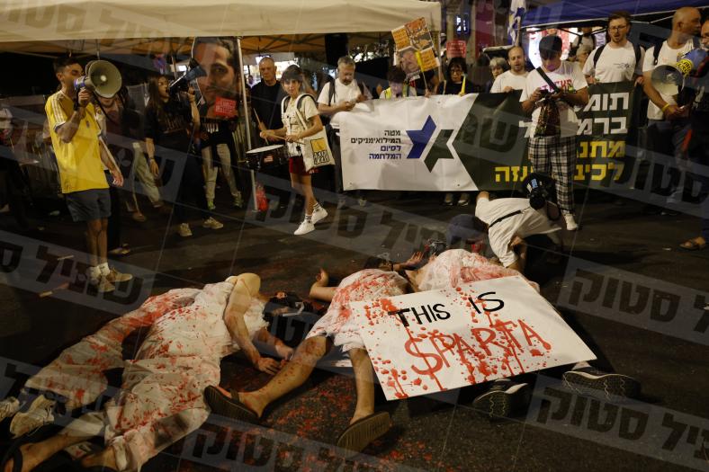 הפגנת משפחות החטופים ליד בית נתניהו ברחוב עזה