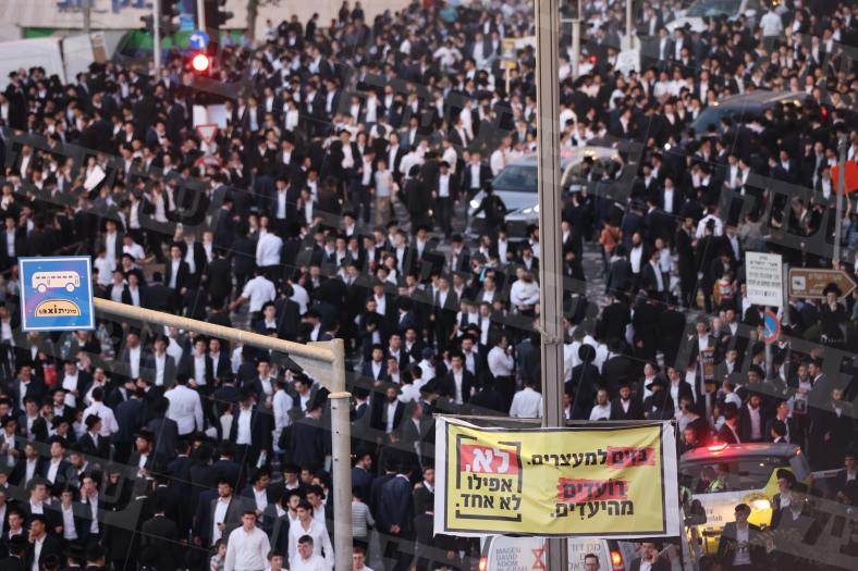 עצרת תפילה המונית של חרדים בכניסה לירושלים נגד גיוס לצבא.